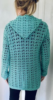 Enrich your winter wardrobe with this cozy feminine cardigan. Great for layering: easy to make and works up fast. The hood is optional. This pattern is suitable for all levels.