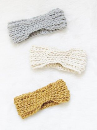 A chunky and classy knit look ear warmer that can be worked up in just 15 minutes. It takes only 35 yards of yarn to make one and they will make great gifts this season. It includes 3 sizes, child, Adult Small and Adult Medium/Large.