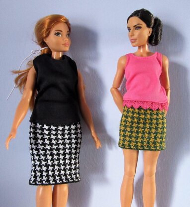 Both skirts 6.5 cm/2½-inches across hips. Waist to hem: Long skirt - 10 cm/4-inches; Mini skirt - 6.5 cm/2½-inches