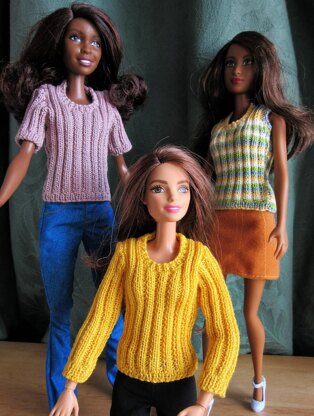 All jumpers will fit a standard, tall or Curvy Barbie with no alteration of pattern required