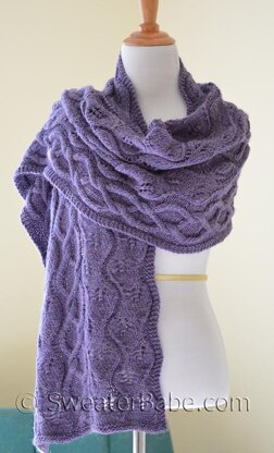 A gorgeous cable panel and lacy leaf panel travel in perfect harmony along the length of this generous rectangular stole (or scarf).