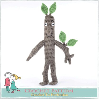 Stick Man is 12.5” / 32cm tall including his leaves if using similar yarn and hook.