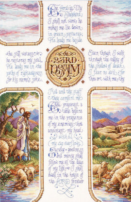 By Sandy Orton. Beloved for its comfort and enlightenment, it's the inspiration for this beautiful treasure! "The Lord is my shepherd..." is stitched in the form of the cross and the corners are filled with divine images of the shepherd, his sheep and an awe-inspiring cloud-filled sky. This Counted Cross-Stitch design will become a cherished heirloom. Every stitch has the magic to elevate your mood and transport you far from the daily hustle and bustle.