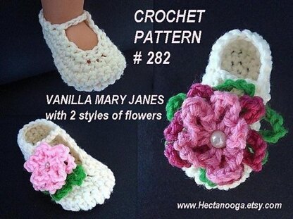 This is a SUPER EASY, MARY JANE BOOTIES PATTERN... and you get to choose to make 2 styles of flowers to decorate them. You can also use just one small flower or go for the big deluxe style. Cute! Cute! Cute!