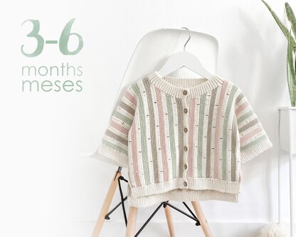 The jacket shown in the images is size 3-4 years. For other sizes, the number and arrangement of stripes may change. The color scheme for this size is detailed in the pattern.