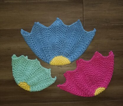 Protect yourself from microwave burns with this bowl potholder collection. (For Bowls: 5”, 5 1/2” and 7 1/2”) Put your potholder on your bowl and place it in the microwave. Cook your food and remove from oven with the potholder already in place. (Also great for cold dishes.) These are easy to make and are very useful. Pictures are provided to help you along the way with this written-step-by-step pattern. Great Project for beginners.