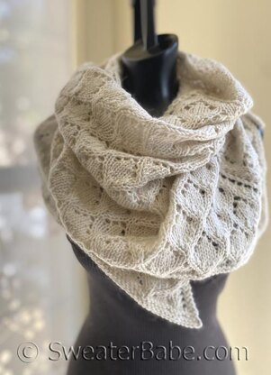 A fairly simple diamond lace stitch looks spectacular as an all over lace in this triangular shawl.