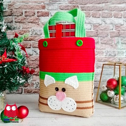 The bag is made of Kable by Moscow Yarn Company (100% cotton, 430 m/100 g) and Sunny by Troitsk Yarn Company (100% cotton, 425 m/100 g). Eyes are made with one strand of yarn and all the other parts of the bag are made with two strands of yarn held together.