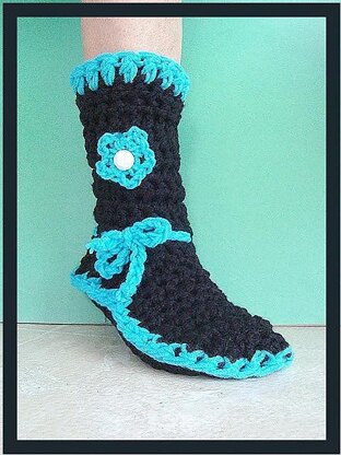 332.... Crochet Pattern BLACK BOOT SLIPPERS..by Hectanooga.etsy.com . all sizes from newborn to adult... Permission to sell your finished slippers.