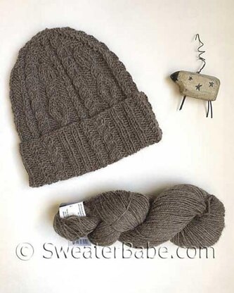 A wide, ribbed cable cuff and beautiful cable panels take this classic beanie shape up several notches on the style scale.