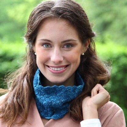 Finished Measurements: 20 (50)” circumferenceYarn Requirements: 1 skein Valley Yarns Charlemont Hand Dyed by the Kangaroo Dyer (60% Fine Superwash Merino Wool/ 20% Silk/ 20% Polyamide; 100g/439yds) shown in Teal Blue