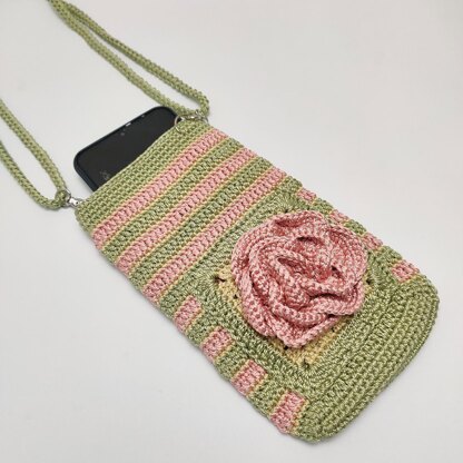 The resulting 3D Rose Flower Crochet Phone Bag is approximately 18x9.5x3cm and the Pocket size is 9x9cm