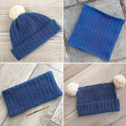 This pattern is suitable for improving beginners. Using the same basic pattern, you can make 2 styles of hat and 2 styles of cowl. These are a bobble hat, a double bobble hat, a slouchy cowl and a structured cowl.