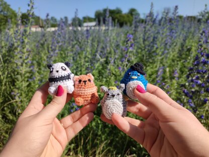 This pattern includes patterns for four toys - panda, cat, Totoro and penguin. I made them using acrylic yarn so they are small and cute! You can use any yarn type and colors!