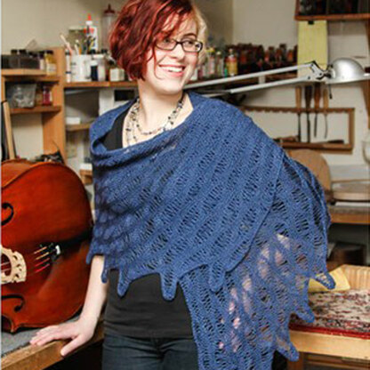 In honor of WEBS' 40th Anniversary, Janice Kang created this stunning, lacy wrap made with cleverly arranged, elongated stitches and easy garter stitch - creating undulating waves of graceful lace. The Merino and Tencel® fiber content of Valley Yarns Colrain Lace gives it a lustrous sheen and gorgeous drape; it's particularly soft in open lace patterns, and is substantial enough to really hold its shape.