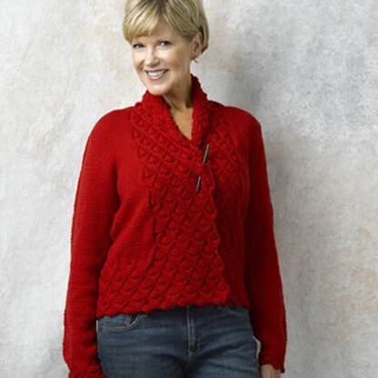 The Heart of Oak Cardigan is knit from the bottom up in cosy Valley Yarns Northampton and features the same beautiful stitch pattern found on the Heart of Oaks Hat, Scarf, and Christmas Stocking. This jumper has set-in sleeves and a wide shawl collar that can either be overlapped and secured with a shawl pin or folded back to show off the reverse side of the Heart of Oaks lace. Note: Lace pattern is written only.