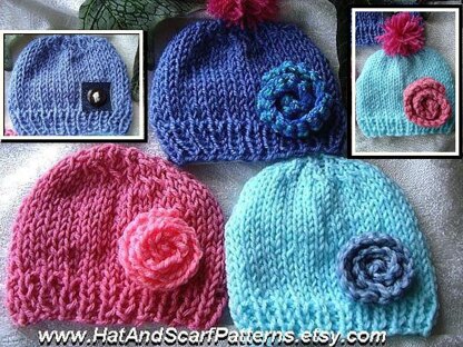 How to knit a basic beanie hat for anyone, boys or girls, men or women, children. Knitting Pattern Hat with Rolled Flower Unisex hat for Boys or Girls Newborn to Adult sizes included. CLICK HERE FOR MY SHOP ON RAVELRY: http://www.ravelry.com/patterns/search#sort=best&query=Emi Harrington
