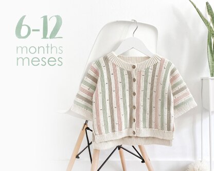 The jacket shown in the images is size 3-4 years. For other sizes, the number and arrangement of stripes may change. The color scheme for this size is detailed in the pattern.