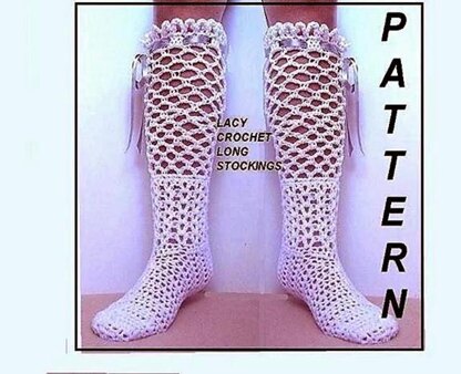 Make some lacy long stockings with my crochet pattern, make knee highs, thigh high, slouchie, lace stockings, #636, crochet supplies, craft supplies. Make them as tall as you like, from ankle to thigh! Cute bridal accessories, or for many occasions. White mesh stockings, lacy long stockings, crochet stockings,or lacy bridal stockings.