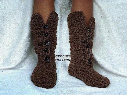 crochet PATTERN - tall boot style slippers, Taupe button front slippers - Age 1 to adult sizes, toddlers, children, teens, preteen, men, women from https://www.etsy.com/shop/Hectanooga See more slipper patterns here: https://www.etsy.com/shop/Hectanooga?section_id=5823840&ref=shopsection_leftnav_7