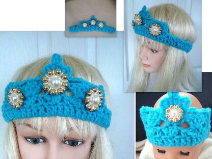 Crochet PATTERN num. 708 - Princess CROWN - TIARA, make newborn to adult sizes, Costume Play, Halloween, Theater , kids, teen. Use as a fancy headband, or for play acting.