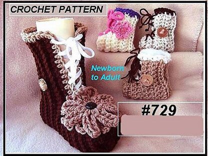 CROCHET PATTERN - Baby Booties - or child or adult Slippers, make any size, laced up boots, cozy warm slippers, easy to make, #729 Emi Harrington Design. See more slipper patterns here: Emi Harrington Designhttps://www.etsy.com/shop/Hectanooga/search?search_query=slippers+and+booties&order=date_desc&view_type=list&ref=shop_search