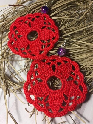 Pattern is written in English language, US terminology. Needed materials : Crochet hook - 1.5 mm Cotton yarn 50 г/282 m (1.75 oz/308 yards) - i used Pink YarnArt Violet yarn, a pair of beads, jewelry hooks and eye-pins. You will need Adobe reader to open this pattern. Please do not copy, resell or distribute my patterns. You can sell products made by yourself using this pattern :) Wish you good luck in your work!