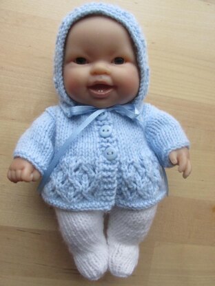 Vintage style pram set for the 8" chubby Berenguer doll. Hard to find knitting pattern uses 2.5mm needles and a fine DK yarn such as Sirdar Snuggly DK.