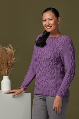Valley Yarns Pollia is a stunning women's A-line pullover knit in Valley Superwash DK. All the cable lovers in the knitting community will drool over it. The sweater’s detailed cable panel is offset with a reverse stockinette stitch on the back and the sleeves. The saddle shoulder defines the cabled sleeves. Pollia is knit flat in pieces from the bottom up and then seamed. The neckband stitches are picked up and worked in the round. Valley Superwash DK is machine-washable in cold water with a gentle detergent or Eucalan. The 3-ply construction of this yarn gives it an excellent stitch definition, so it’s a great choice for Pollia. The cable panels are charted and written out.
