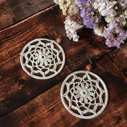 You will also need: * Earring hooks * Jewelry hoops 2.75 inches in diameter. * Wooden beads for décor * Round pliers * 2 1-inch eye pins