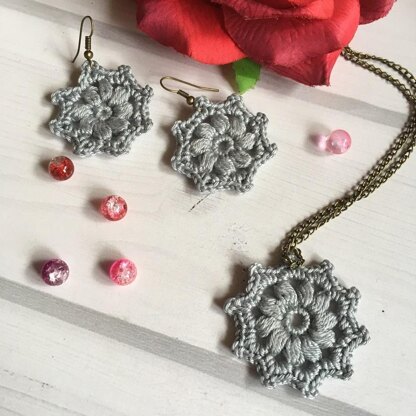 90. Crochet Pattern for Floral Earrings & Pendant
