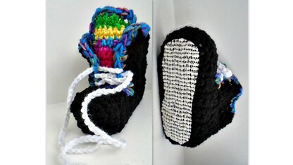 CROCHET PATTERN, for Unisex Style Sneaker Slippers. Cute multicolor tongue to add interest to the slippers. Very easy with photos of the steps included in the pattern.