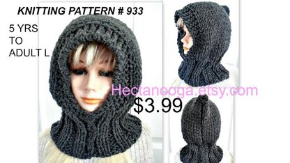 Knitting Pattern, easy beginner level, worked flat on straight needles. 3 sizes: 5 - 12 yrs, Adult, and Adult large. A warm knitted hood for cold winter weather, can be worn around the neck.