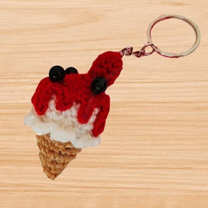 - Materials: Alize Bebe Sekrem yarn (Beige, White, Red, Green) colors Hook No. 3.00 mm Stuffed material Keychain Scissors Beads Glue