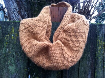 A little Slice is a wonderful loop cowl with two travelling cable patterns and a seed stitch border. The cable patterns are repeated once for the original version, but could also be repeated twice for a wider cowl. A Little Slice is knit in the round in two lengths -- the long loop, and the shorter neck warmer size. The long loop can be worn long or doubled artfully to reveal the cables, while the snug neck warmer is a jaunty, chill-chasing accessory for both men or women. Pattern intstructions are charted and written for the long loop version first, with additonal sizing information after. I have also included two types of charts. One master chart, and then charts broken down for each cable pattern, in larger type, for those of us with a few stitches over our needles. And there is a variation for a wider version