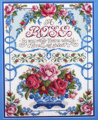 By Kooler Design Studio. A Rose by Any Other Name Would Smell as Sweet. Fragrant Sweetheart roses adorn this lovely sampler. Ribbons and roses are a perfect match for filling out the borders and corners of this delightful design.