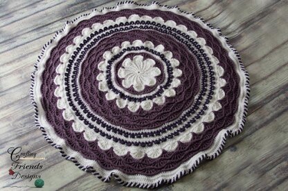Wouldn't this make a beautiful blanket for photo props? A Fun textured rug for your room? How about a stunning throw for your living room or guest room? The A-Round the Flower Garden Afghan was designed as part of the Battle of the Stitches crochet challenge along with 15 amazing designs using the same stitch. This is fabulous in a single color or many, so have fun making your own unique textured round afghan!