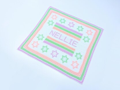 The blanket can be made with most yarn weights and would make a stunning new baby gift, christening or birthday present that can be treasured forever. The finished size in DK yarn is approx 73cm wide x 73cm high. You can make this blanket bigger or smaller using the stitch multiple provided in the foundation line of the pattern. Therefore any length of name or names can be accommodated for.