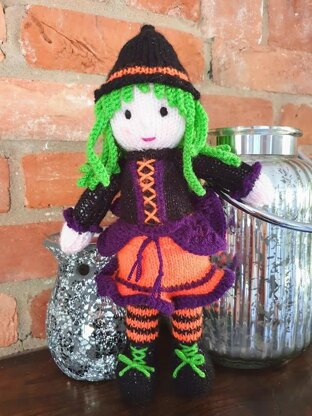 This pattern is for a cute little Witch. Inspired by a lack of cute witches, Wanda is the first witch in my Bewitched collection. The pattern features a knitted cobweb style skirt peplum. A bodice that uses duplicate stitch and a little single crochet around the skirt edge and chain stitch on sleeves. The crochet can be changed for extra knit rows, and is explained on pattern. The pattern is not difficult but some basic knitting skills are desirable. The pattern uses 3mm needles and dk yarn. I hope you enjoy knitting her, but please get in touch if you need any help to understand the pattern. Thanks!