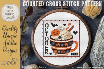A wonderful monthly mug counted cross stitch design.\nCross Stitch Pattern Designed by Marcia Manning.\nStitch just the mug or the entire design. Either makes a wonderful project.\nConsider stitching on a matching wood blank too - how fun!\n92 stitches wide by 92 stitches high.\nPDF is a COLOR counted cross stitch chart which lists suggested DMC floss colors, and includes a color picture.\nStitched design size is as follows:\nSize 11 count: 8.36 x 8.36 inches or 21.24 x 21.24 cm\nSize 14 count: 6.57 x 6.57 inches or 16.69 x 16.69 cm\nSize 16 count: 5.75 x 5.75 inches or 14.61 x 14.61 cm\nSize 18 count: 5.11 x 5.11 inches or 12.98 x 12.98 cm