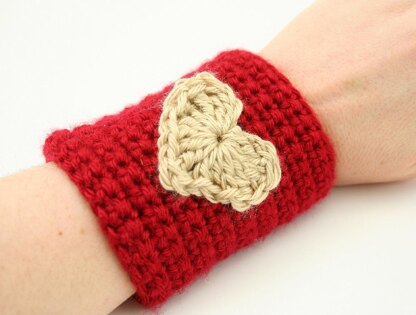 Cute and easy to work up! This simple cuff bracelet features a heart motif. Makes a wonderful gift! Pattern is detailed and easy to follow.