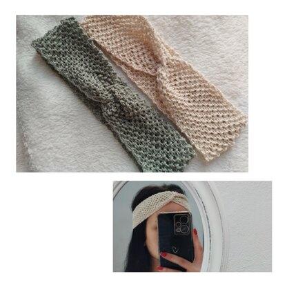 This headband is made with 5-ply/sport cotton yarn and a 4 mm knitting needle. If you use a different yarn thickness, it is recommended to use a knitting needle that is larger than the yarn you are using, to prevent the work from being too tight.