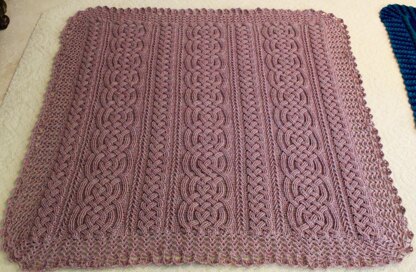 DescriptionAn elegant blanket design with an intricate cable motif echoing the Aran tradition. This blanket is bordered by a lace edging that complements the texture of the central cables in the design. The pattern includes a stitch diagram of the cable pattern. Video tutorials of the stitches used are included in this pattern (see links below).