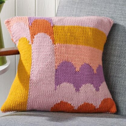 This is a pattern for an Abstract Cushion Cover, originaly published in Simply Knitting. The front is in intarsia, the back in stocking stitch with moss stitch edgings. Photos Simply Knitting.