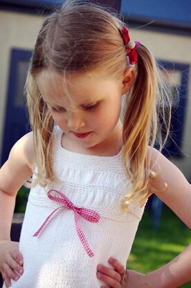 acacia can be knit with either a few gathers across the bodice of the singlet and finished with a ribbon, or the body fully gathered. Either is equally super-girly and cute and looks great with either skirts, shorts or pants.