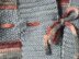 This kimono style cardiagn ties in front with an i-cord tie which is threaded through the fronts and tacked down at the back for safety, the i-cord provides a lovely contrast to the sash section of the garment. The jacket is worked in stocking stitch, moss (seed) stitch and reverse stocking stitch stripes, and makes good use of handpainted yarn for the Main Yarn, a solid or semi-solid is used as the Contrast Yarn.