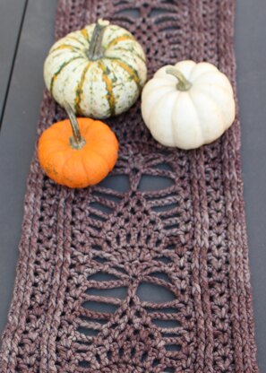 Skill Level: Advanced Beginner/Early Intermediate Finished Dimensions: 10” wide x 30” long (25.5cm x 76cm), blocked Length of table runner can be adjusted to be longer or shorter. Adjustments will change the amount of yarn needed. Yarn Type: Bulky Weight (not Super Bulky; 200 yds needed; yarn should be approx 100yds/100g) Hook Size: US J/10 (6mm) Instructions are both written and charted.