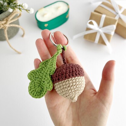 Acorn with leaf crochet pattern keychain charm Amigurumi pattern PDF Keyring bag charm Crochet car hanger