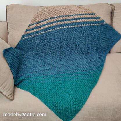 This blanket pattern is worked from corner to corner and uses the Cluster stitch for a beautiful and squishy texture. It combines 3 different colors to create more interest.