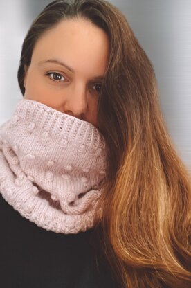 Yarn: The cowl in the picture has been knitted with Cascade 220 yarn in the color Soft Pink (4192). You can also use other aran weight yarn.